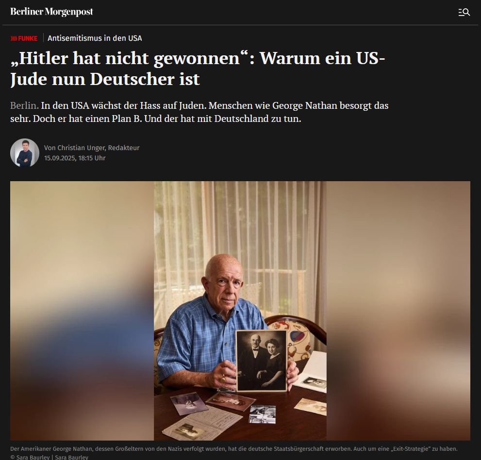 Berlin. In den USA wächst der Hass auf Juden. Menschen wie George Nathan besorgt das sehr. Doch er hat einen Plan B. Und der hat mit Deutschland zu tun.